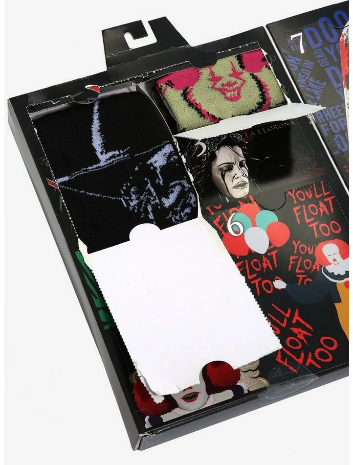 Keep it creepy when it comes to your feet with this gift set featuring 13 pairs of horror-themed socks including designs from Friday the 13th, The Nun, A Nightmare on Elm Street, IT Chapter Two, The Exorcist and more.ย