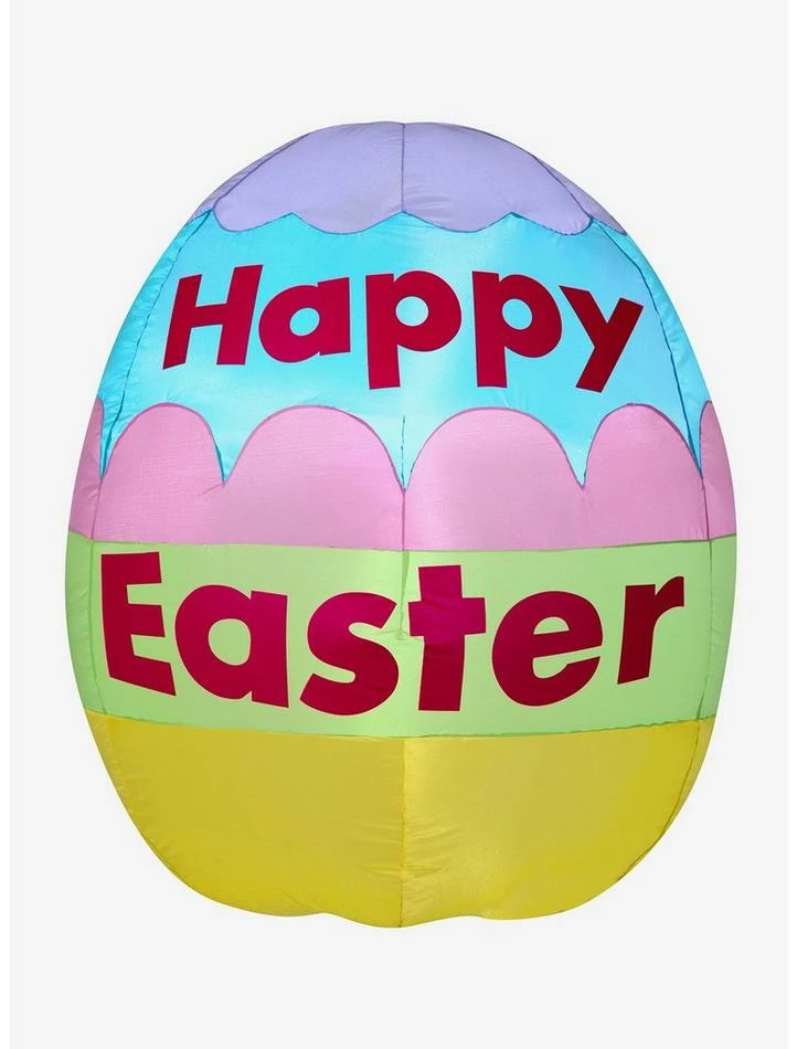 Celebrate the season with a colorful Airblown Inflatable Easter egg! Accented with a “Happy Easter” message, this charming decorated egg inflatable makes an eye-catching addition to your Easter decorations. Setup is super simple. Just plug it in, stake it down and watch the magic unfold. Includes everything needed for easy outdoor setup.