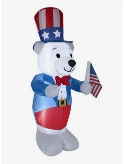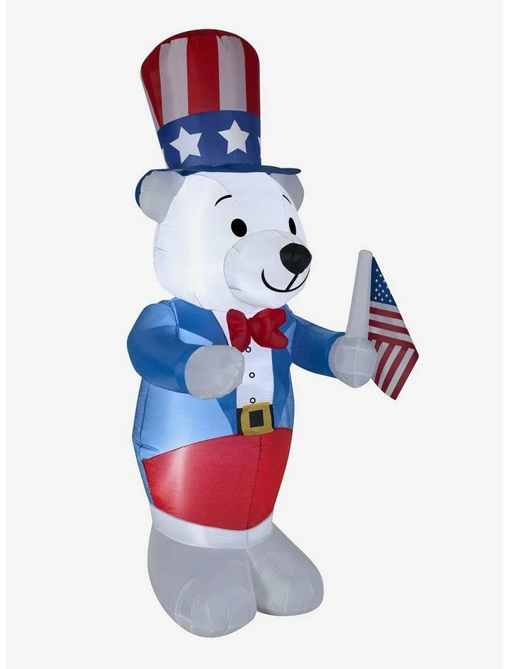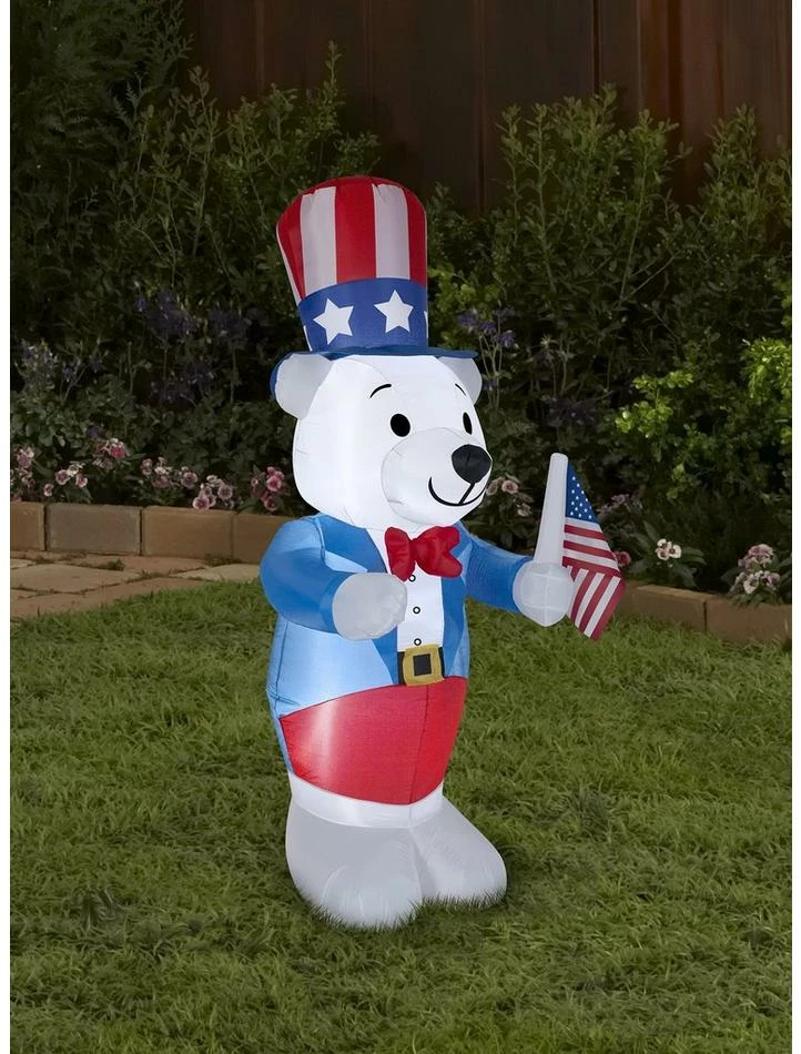 Make a star-spangled statement with an Airblown Inflatable polar bear decked out in red, white and blue! Accented with an American flag, this patriotic inflatable makes an eye-catching addition to your July 4th decorations. Setup is super simple. Just plug it in, stake it down and watch the magic unfold. Display this Fourth of July decoration as a standalone or combine it with other Airblown Inflatables to create a custom scene. Includes everything needed for easy outdoor setup.