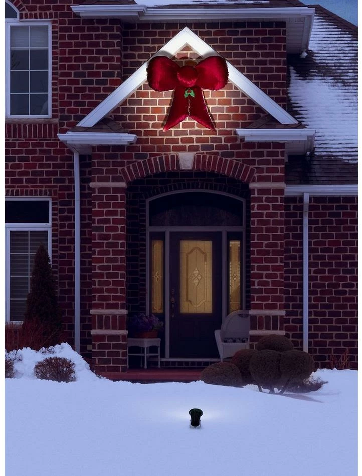 Decorate with a huge velvet Airblown Inflatable Christmas bow! Featuring soft, velvety red fabric, this stunning Christmas inflatable makes an eye-catching addition to your outdoor Christmas decorations. Includes a loop for hanging and an external spotlight that stakes into the ground. Setup is super simple. Just plug it in, hang it and watch the magic unfold. Includes everything needed for easy outdoor setup.
