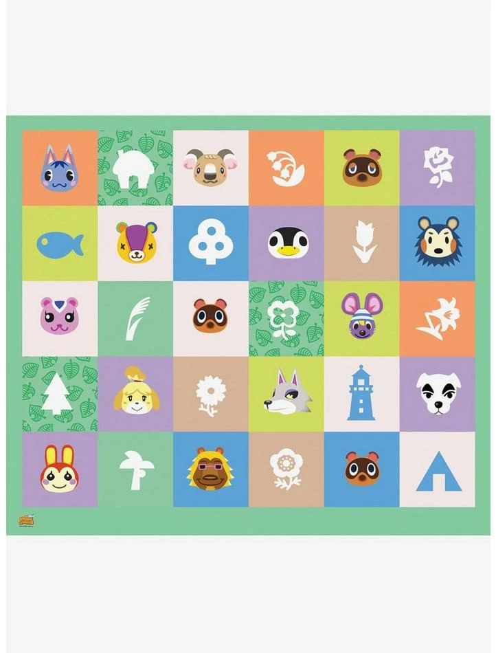 Your favorite cast of characters, one per block, form a pretty grid in this Animal Crossing Tapestry from RoomMates. Fans of Nintendo’s social simulation video game will love the soft mint colors of green, blue, pink and peach that create a fresh and friendly color palette for the dog, bunny, lion, fox and friends and makes decorating simple with so many colors to choose from when coordinating your room. Fresh and bright décor for your child! Includes 1 tapestry: 52 inches x 60 inches.
