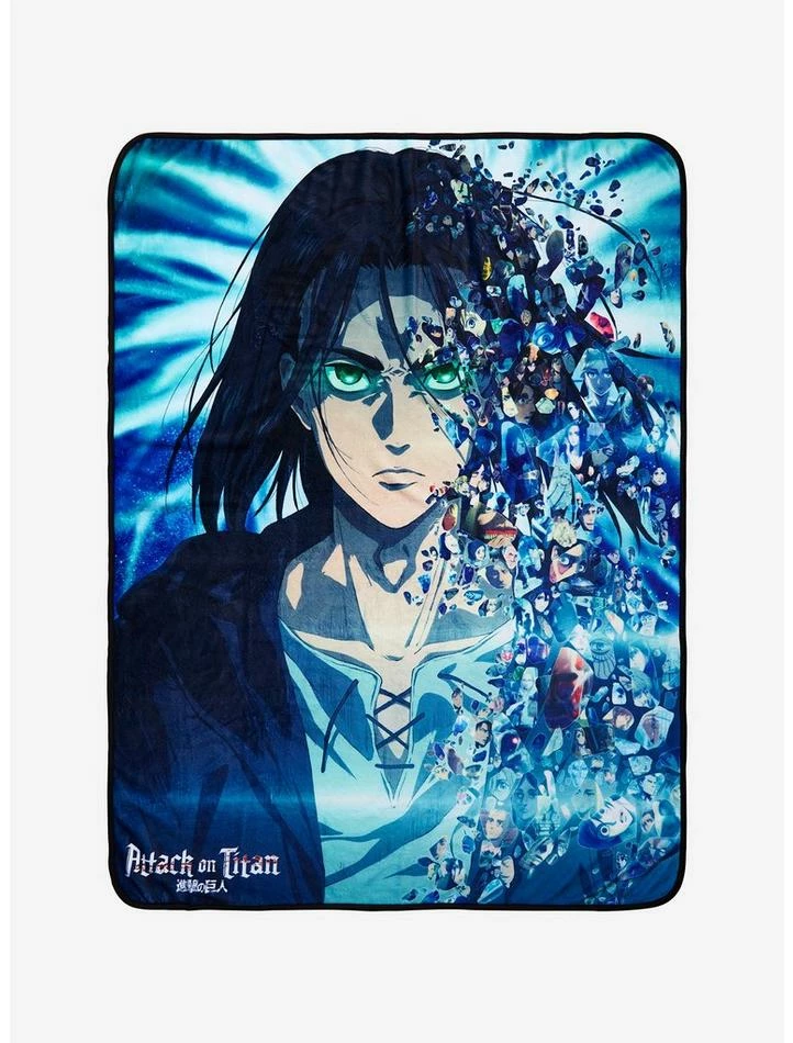 ย We definitely need an emotional support blanket for the final part of Attack on Titan. Whether you’re defending Wall Maria or binging the series at home, this throw blanket is a must! Features a large portrait of Eren in the Paths, with fragments of characters and scenes from the show scattered down one side.