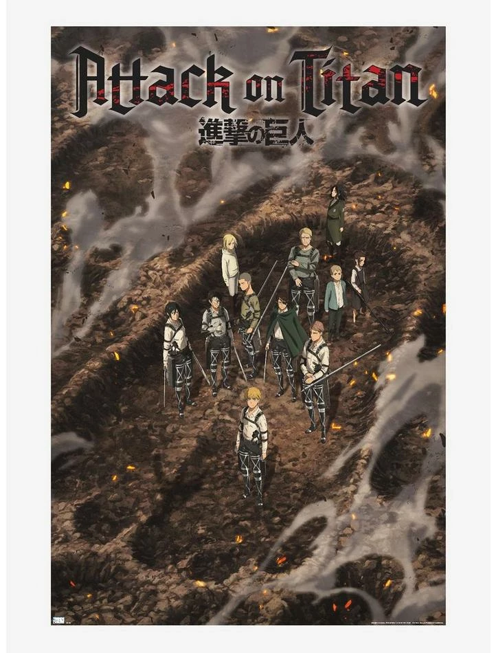 Gearing up to save humanity one more time? Decorate your space with this Attack on Titan poster! Get ready for the final part of the last season with this poster, featuring a Colossal Titan’s footprint and the remaining main characters standing in the center of the carnage.