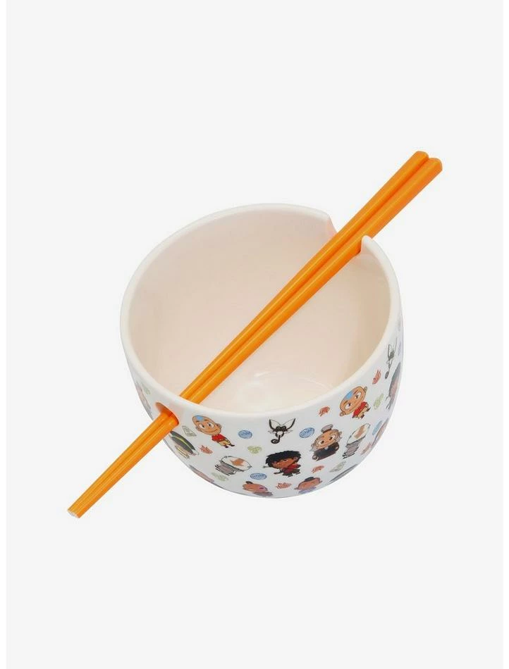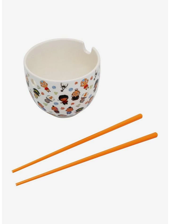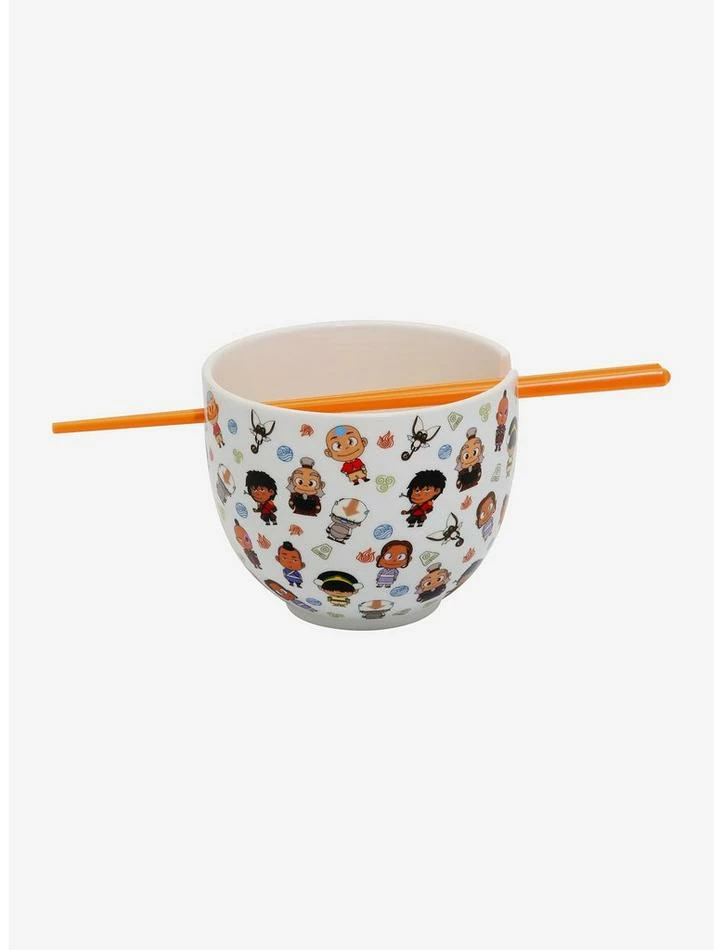 Relax after a long day of practicing your airbending techniques with a hot bowl of ramen! From Avatar: The Last Airbender, this ramen bowl features an allover chibi character print and includes a pair of chopsticks.