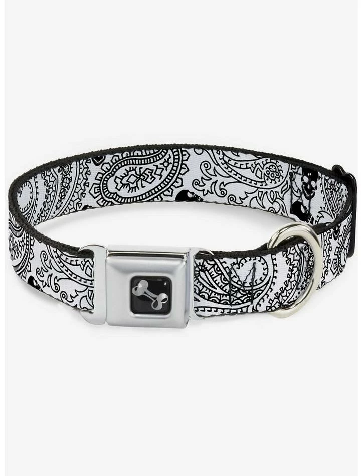 Budget ๐ Bandana Skull Print Seatbelt ๐ถ Dog Collar White Black โค๏ธ