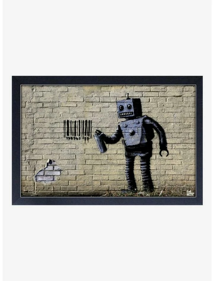 Coupon ๐ Banksy Barcode Robot Framed Wood Wall Art ๐
