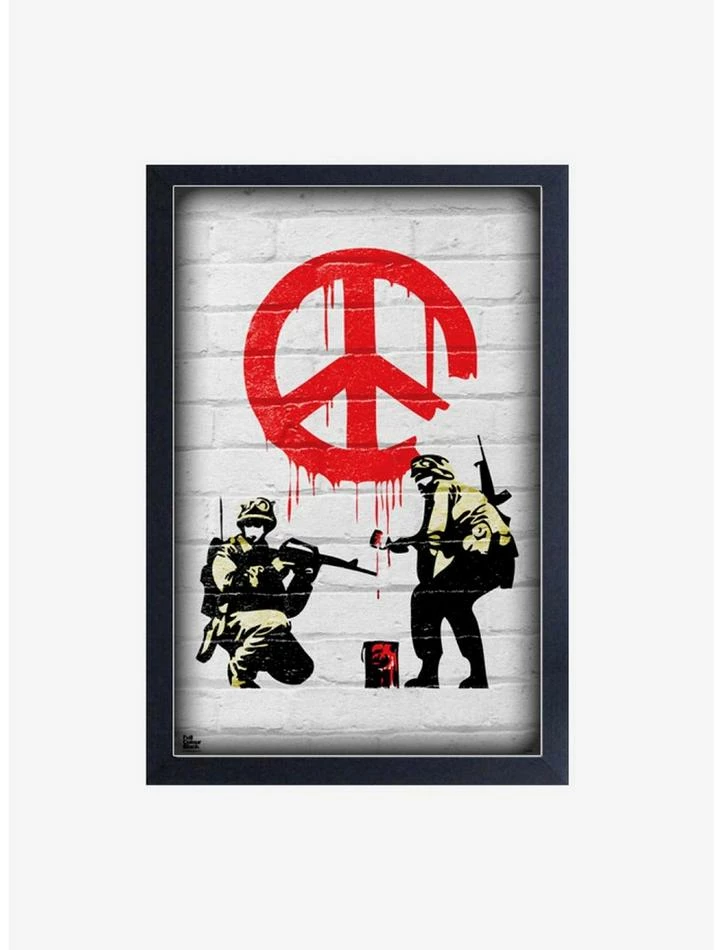 Brand new 👍 Banksy Peace Soldiers Framed Wood Wall Art ❤️