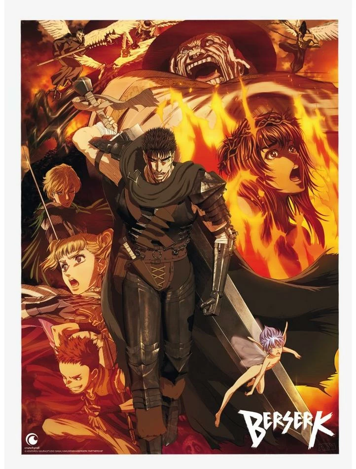 Officially licensed Berserk posters printed on glossy poster paper. Includes two mini-posters measuring 15″ x 20.5″ each. Designs featuring Guts, Griffith, Casca, Puck, Farnese and more of your favorite characters from Berserk.