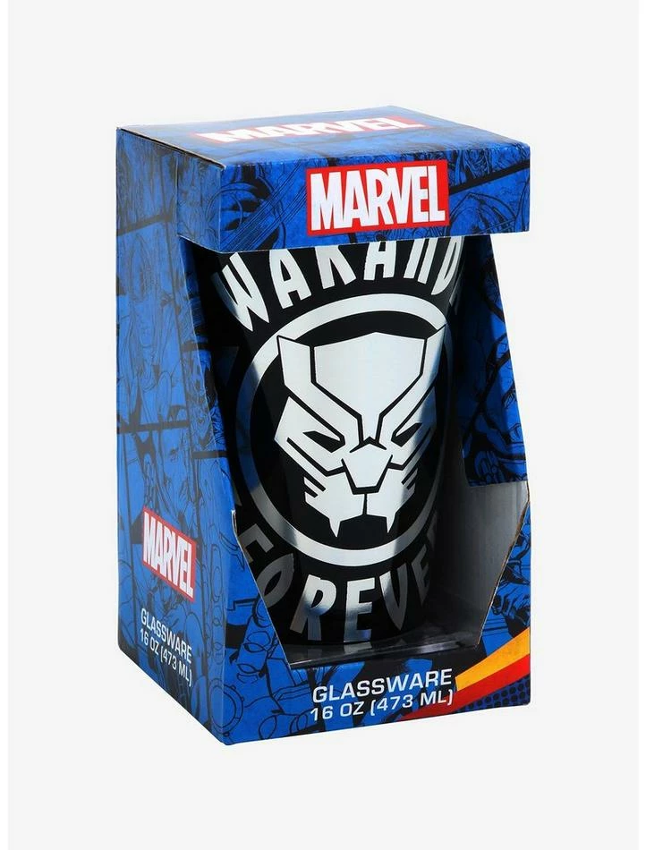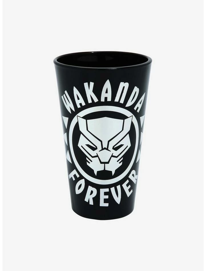Need something to wash down the Heart-Shaped Herb you just ingested? We’ve got the perfect pint glass for you! Rep Wakanda with this Black Panther: Wakanda ForeverΒ pint glass, featuring the Black Panther symbol and “Wakanda Forever” printed in a metallic silver finish.
