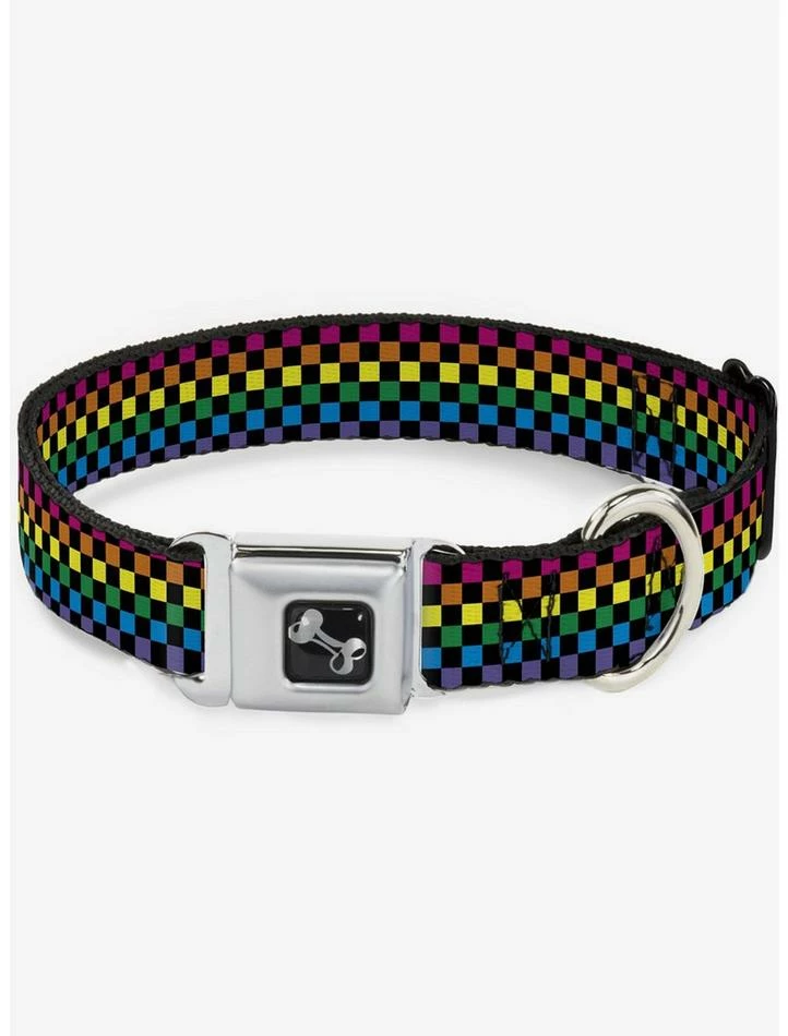 Discount 👏 Checker Print Seatbelt 🐕 Dog Collar Neon Rainbow 🔔