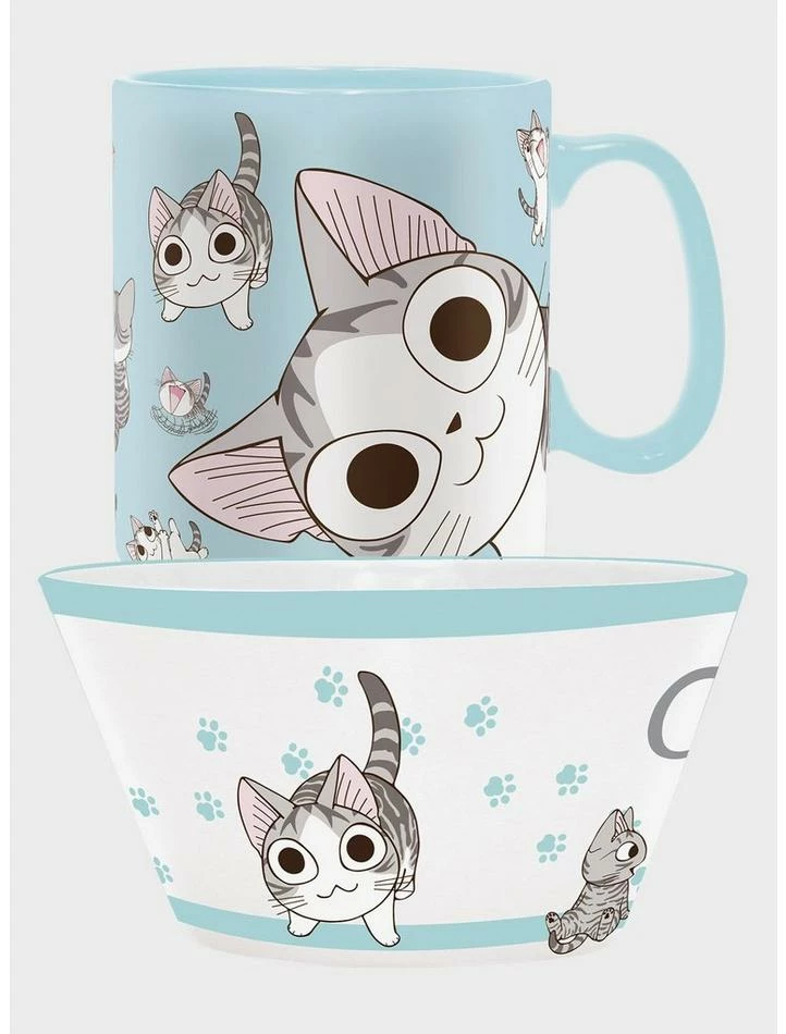 Officially licensed Chi’s Sweet Home products. Includes (1) mug featuring pictures of Chi on a light blue background (1) bowl featuring a wrap-around design of Chi and her siblings. Ceramic mug has a 16 oz. capacity. Mug and bowl are dishwasher and microwave safe.