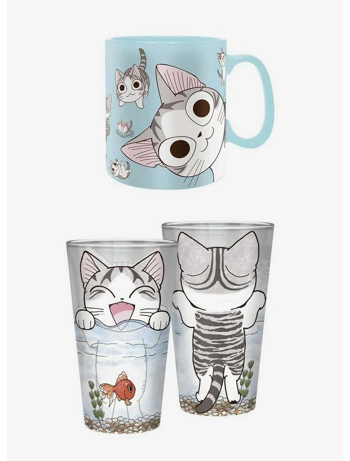 Officially licensed Chi’s Sweet Home merchandise.Bundle includes (1) Chi Glass and (1) Kitty Poses Mug.Glass holds approximately 14 oz.Mug holds 16 oz. Mug is dishwasher and microwave safe. Glass is hand wash only.