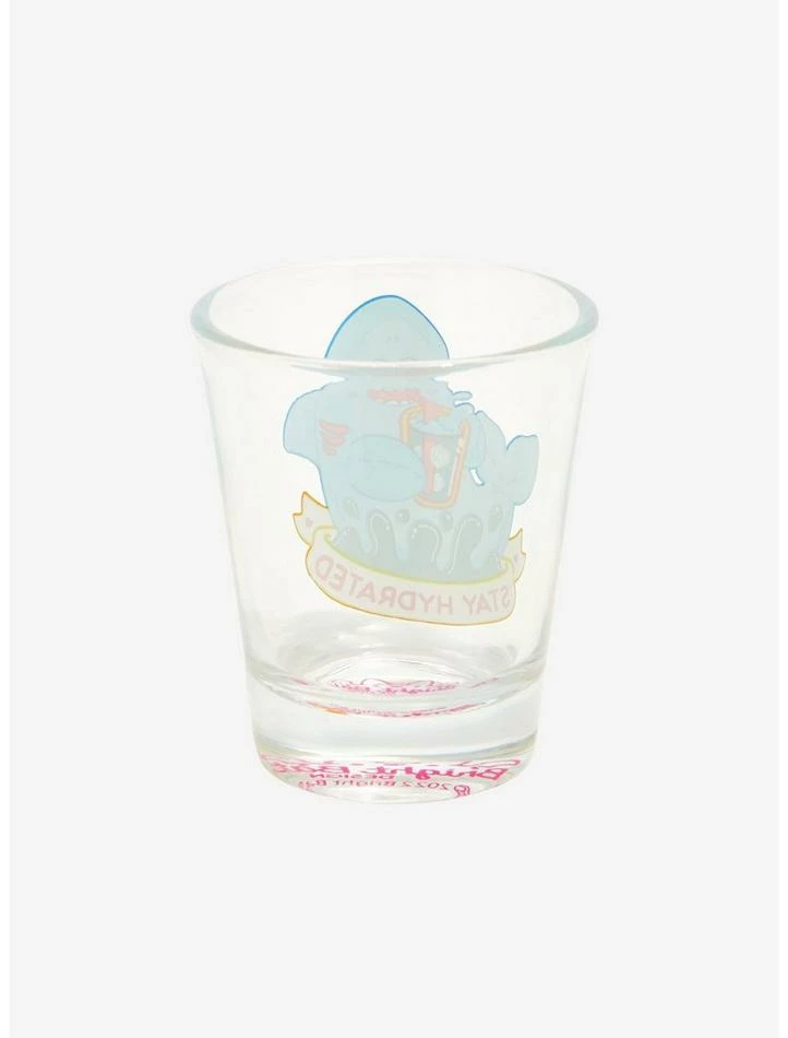 ย We aren’t sure what a shark’s drink of choice is, but whatever yours is, this cute mini glass is here to help. It’s printed with a chibi shark enjoying a beverage with text reading “Stay Hydrated.”