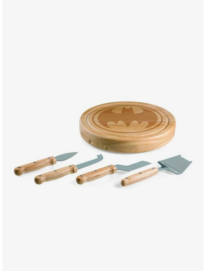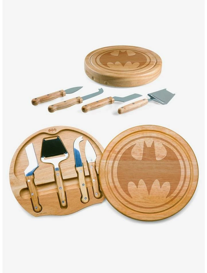 When it comes to cheese-related crime, Batman’s your guy. The Bat Signal Circo Cheese Cutting Board & Tools Set makes attractive use of limited space with a split-level wood cutting/charcuterie board and interior cheese set. Made from durable and stylish acacia wood, this cheese board’s cutting surface swivels open (major Batmobile vibes!) to reveal four brushed stainless steel cheese tools including: one cheese cleaver (for crumbly cheeses), one cheese planer (for semi-hard to hard cheese slices), one fork-tipped cheese knife, and one hard cheese knife/spreader. This unique wood cutting board set also features a recessed juice groove to catch cheese brine or juice from cut fruit.