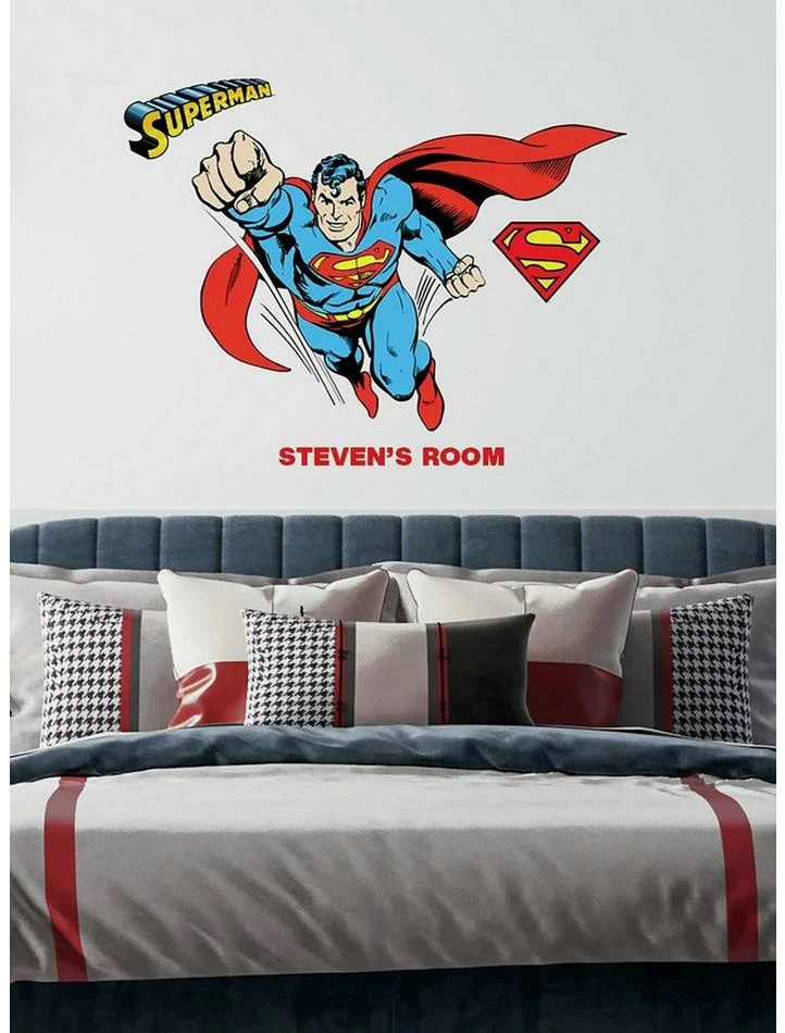 Soar into action with this officially licensed Giant Classic Superman Peel and Stick Wall Decal from. a complete alphabet set for personalization. Supercharge your walls with a vibrant and bold display of the Man of Steel. Wall decals are removable and repositionable with no damage to the wall and no sticky residue.ย