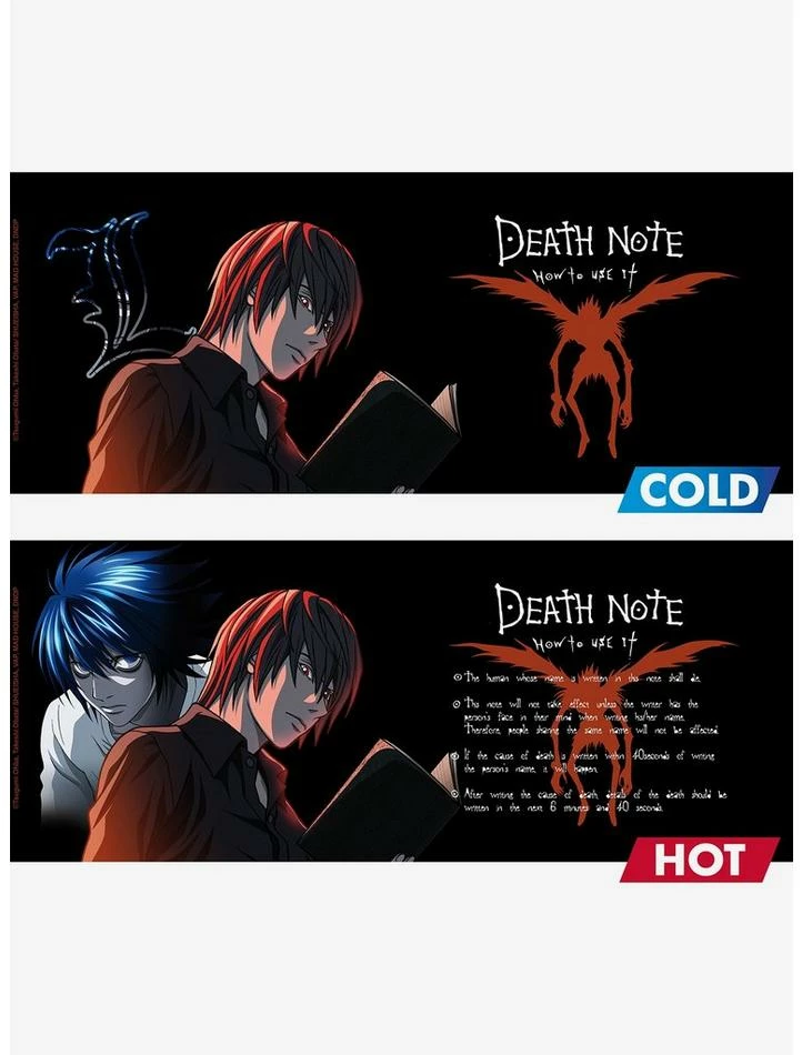 Officially licensed Death Note products. Set includes (1) “L” Figure, (1) “L” PVC Keychain, and (1) Light and Ryuk Heat-change Mug. Figure measures 5.5″ tall. Keychain measures approx. 1.5″ x 2”. Mug holds 16 oz. Mug is hand wash only and not microwave safe.