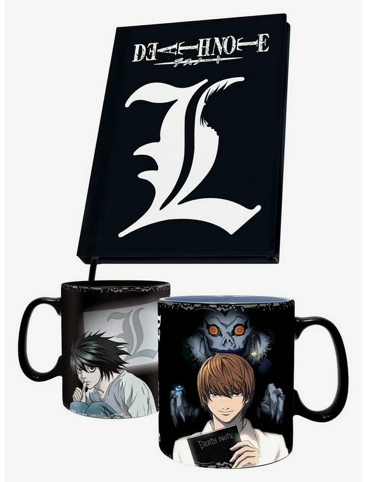 Officially licensed Death Note products. Includes 1 hardcover journal and 1 heat change mug. Watch Ryuk appear when a hot beverage is poured inside the mug. A5 hardcover journal has 100 lined pages. Great gift for fans of Death Note.