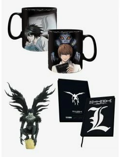 Officially licensed Death Note products. Includes one one Ryuk collectible figure, one one L notebook, and one one heat change Kira & L Mug. Collectible, nonarticulated figurine features Ryuk perched atop a skull measuring 12″ tall. Notebook includes integrated bookmark and measures 6″ x 8.5″. Mug holds 16 oz. and is handwash only. Great gift for fans of Death Note!