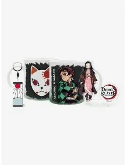 Officially licensed Demon Slayer merchandise.Includes (1) Mug 11 oz, (1) Acryl figure, and (1) keychain.Mug features Tanjiro and the warding mask made for him by Urokodaki.Mug is dishwasher and microwave safe.Acryl figure features Nezuko Kamado.Keychain features a sturdy metal ring to ensure it stays securely attached to your keys, bag, or backpack.