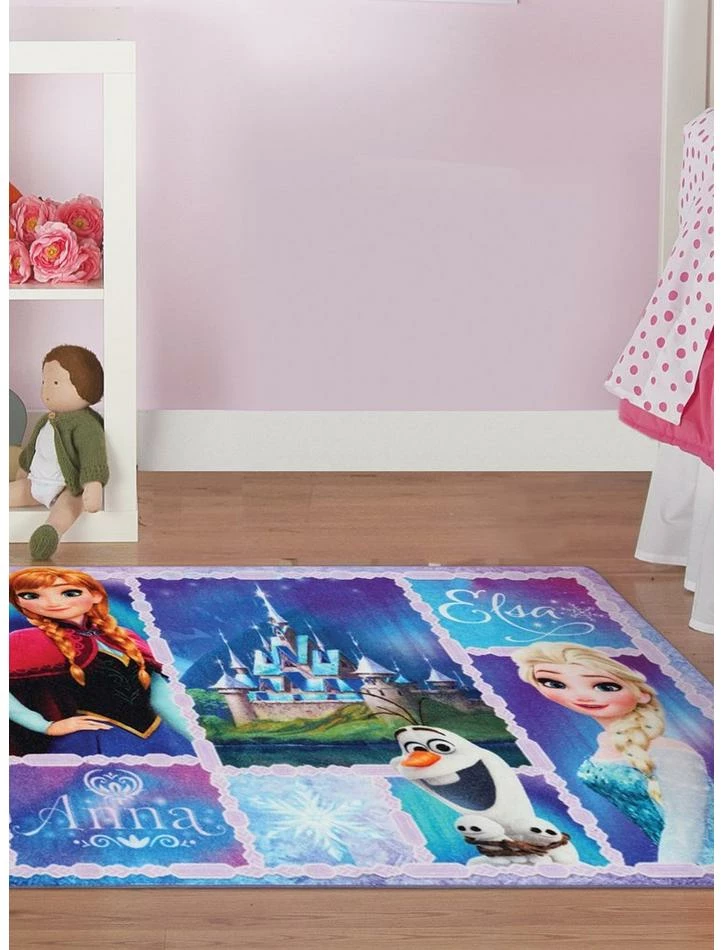 This beautifully designed Frozen Area Rug featuring Anna, Elsa and Olaf will warm up any room. Jumbo rug measures 4’6″ X 6’6″ and is digitally printed providing great color and detail. Finish your Frozen decor off right with this fabulous rug.