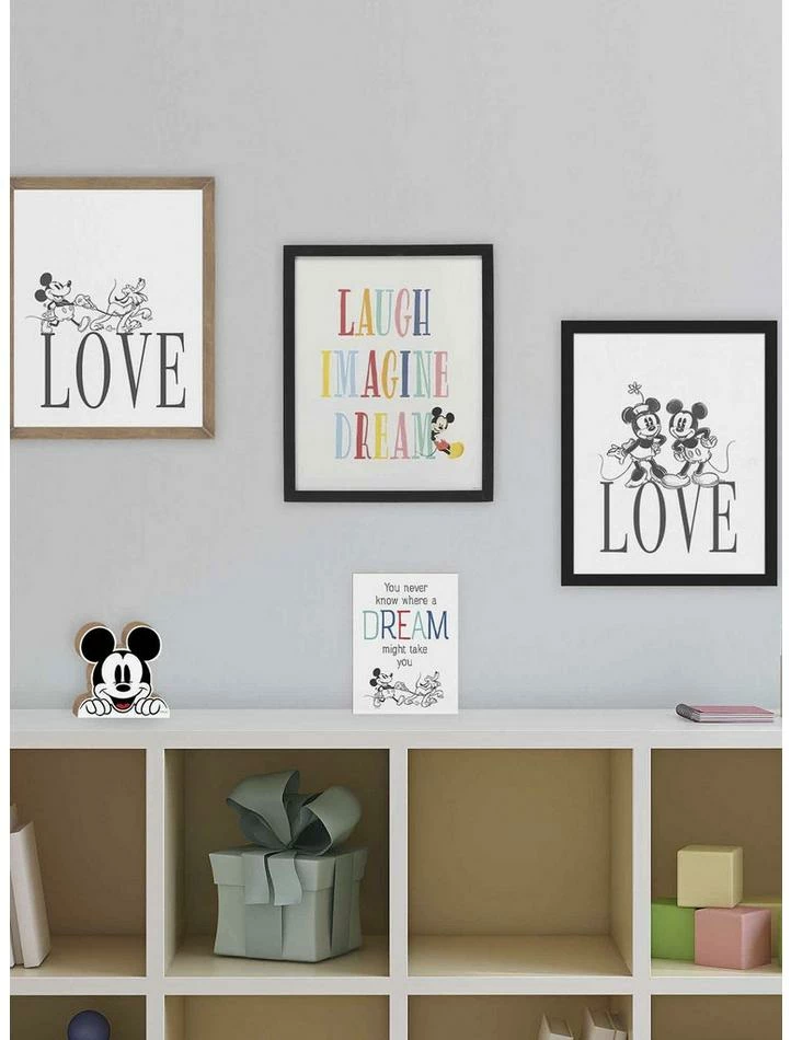 Wholesale ๐คฉ Disney Mickey Mouse Colorful Laugh Imagine Dream Framed Wood Wall Decor ๐