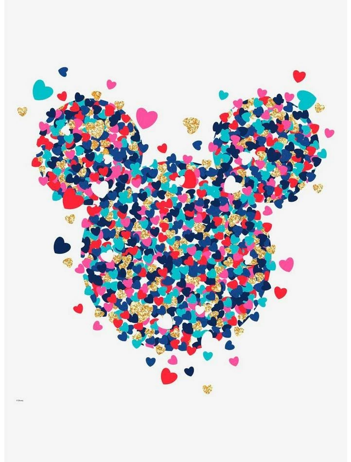 Add some Mickey Mouse to your house with this heart confetti decal! With multi color hearts and glitter details.