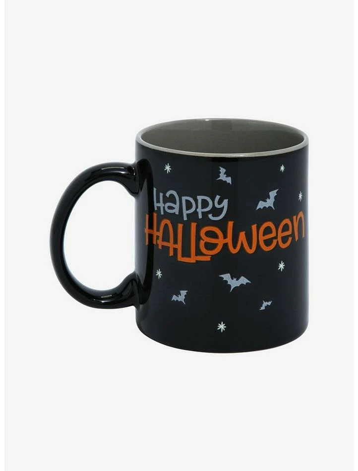 Sip your favorite witch’s brew from this black mug from Disney featuring Mickey Mouse and Minnie Mouse flying on a broom over the moon and “Happy Halloween.”