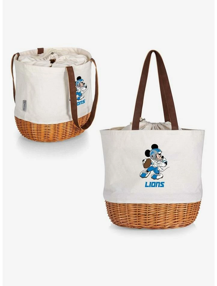 Coupon 🔥 Disney Mickey Mouse NFL Detroit Lions Canvas Willow Basket Tote 🔔