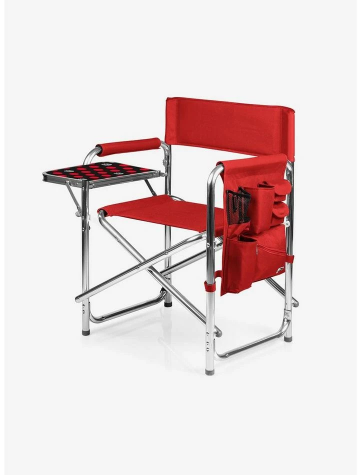 Take your fandom to the field! With this sports chair, you’ll be the coolest spectator under the sun. It features iconic art, a fold-out side table side pockets, and insulated beverage pockets. Lightweight and portable, features an extra wide padded seat, padded arm rests, and an umbrella loop for shade (matching umbrella available). Detachable carrying strap included.