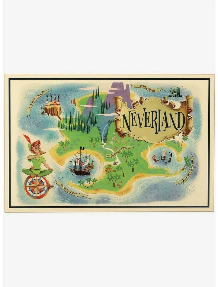 Find your way around Never Land and add a touch of whimsy to your life with this fun, colorful wall decor. Featuring all of your favorite parts of Never Land, this map makes a fun and playful addition to your child’s space.