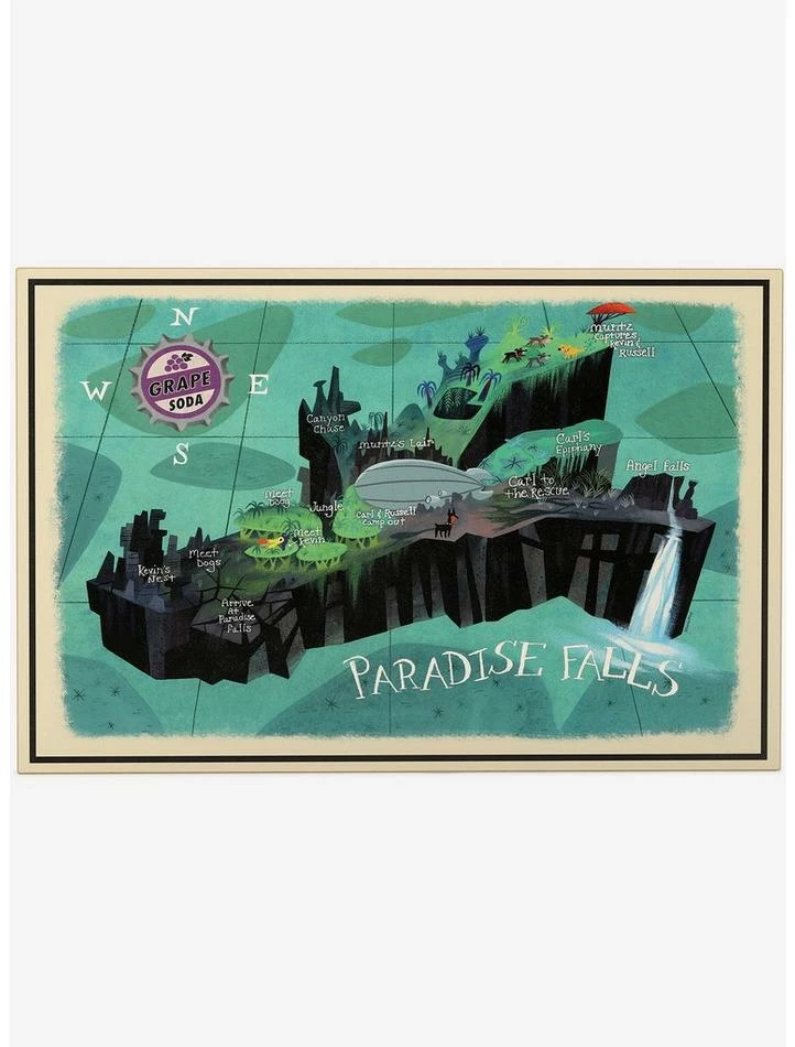 Find your way around Paradise Falls and add a touch of whimsy to your life with this fun wall dΓ©cor. Featuring all of your favorite parts of the mythical land, this map makes a fun and playful addition to your space.