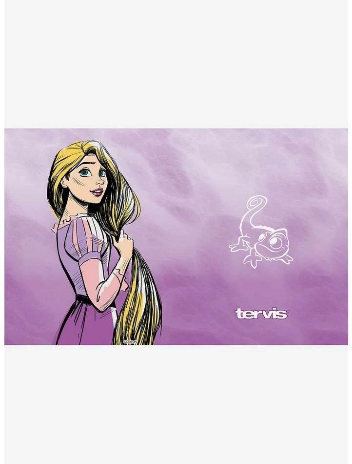 Ready for the best day ever? But first, coffee! This stainless steel travel mug from Tervis features a sketch-inspired design of Rapunzel on one side and a white outline of Pascal on the other.