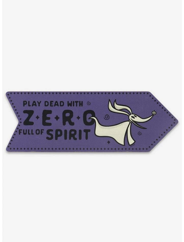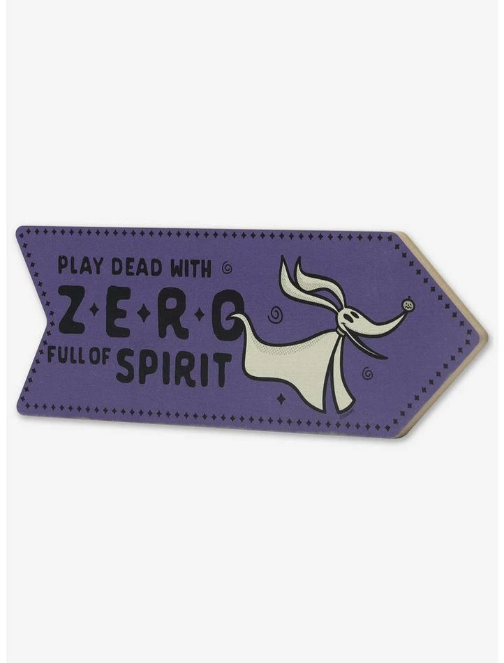 Remember everyone’s favorite ghost dog with this colorful and charming wall art! Boasting an illustration of Zero on a purple, arrow-shaped sign, this decor is a fun and slightly spooky tribute to the beloved Nightmare Before Christmas film.