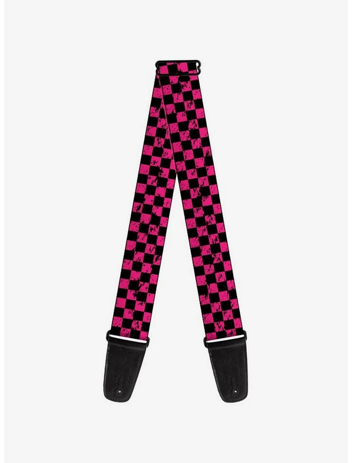 Promo ๐ Distressed Checker Print Guitar Strap Neon Pink ๐