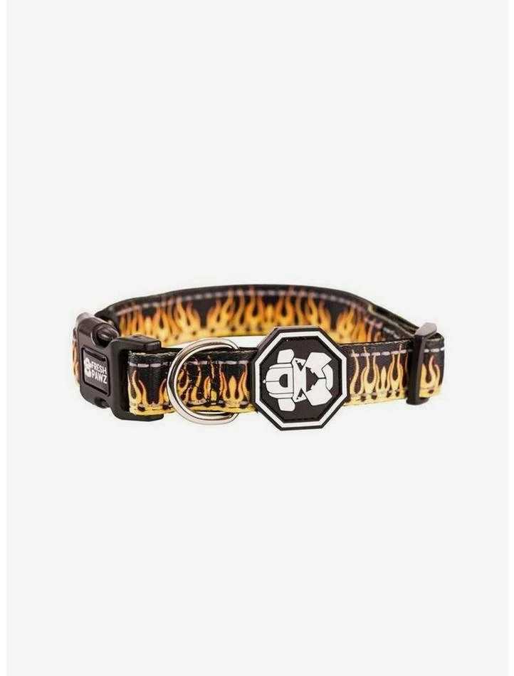 That collar is pure fire. From its added neoprene padding for comfort to its secure locking system, people will be saying what they all say about these dog accessories pure fuego. Features neoprene padding inside for extra comfort and quicker drying, a sublimated polyester strap, weather resistant, and soft.ย Branded buckle with 4-point lock system for added safety.