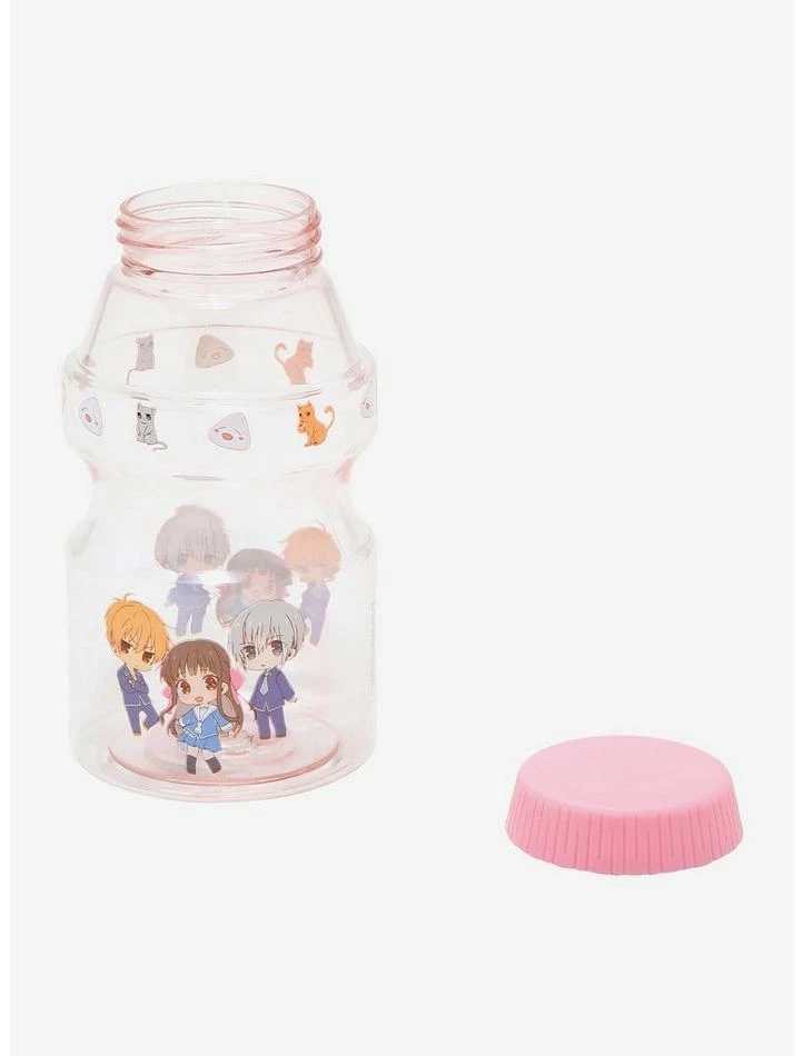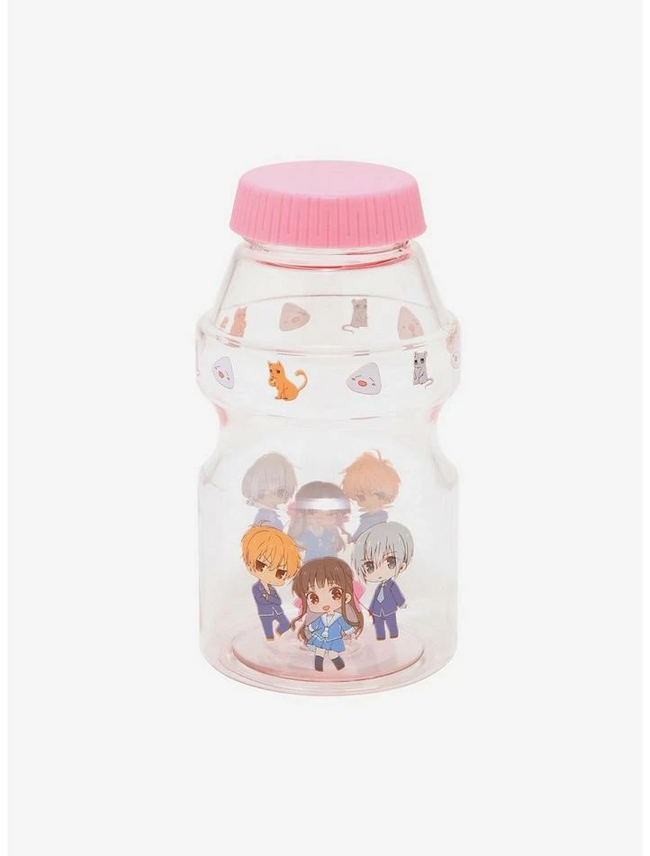 Stay hydrated while you rep your favorite anime with this water bottle featuring a Fruits Basket character design with pink screw-on lid.