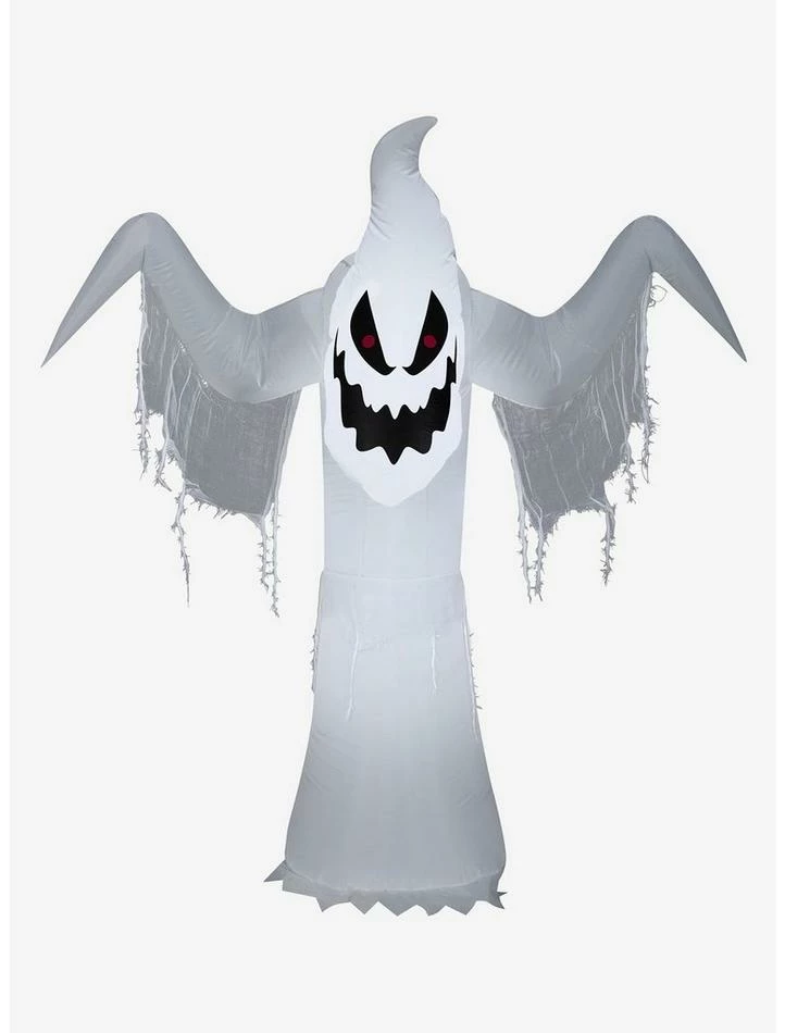 Kick up the fright factor with a spooky Airblown Inflatable ghost! Accented with ghostly gauze, a creepy stance and ghoulish face, our ghost inflatable makes a spooktacular addition to your Halloween decorations. Setup is super simple. Just plug it in, stake it down and watch the creepiness unfold. Display this Halloween inflatable as a standalone or combine it with other Airblown Inflatables to create a custom scene. Perfect for indoor or outdoor Halloween parties.