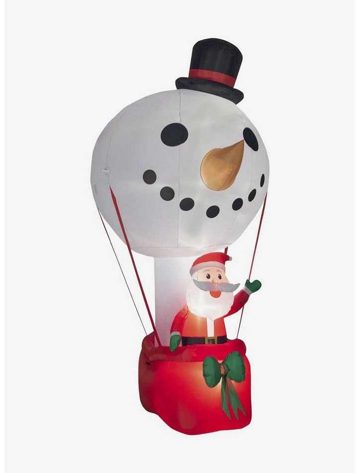 Make a singular statement with a giant Airblown Inflatable hot air balloon carrying Santa! Featuring a gift box basket and snowman balloon, this impressive Christmas inflatable makes an eye-catching addition to your indoor or outdoor decorations. Setup is super simple. Just plug it in, stake it down and watch the magic unfold. Display this giant snowman holiday decoration as a standalone or combine it with other Airblown Inflatables to create a custom scene.