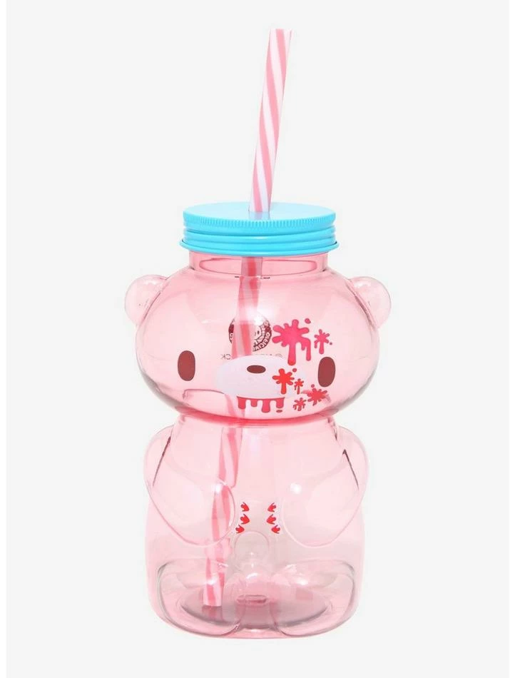 Does your kitchenware need a bit more gloom? Add this Y2K icon to your water bottle lineup! This adorable Gloomy Bear figural travel cup features the iconic bear’s face and blood stained mouth and claws. Comes with a screw-on lid and reusable striped straw.