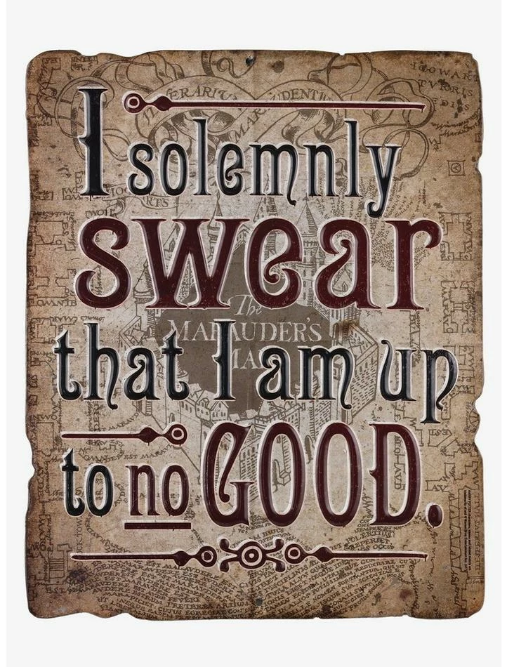 Do you solemnly swear that you’re up to no good? This sign can serve as your own Marauder’s Map, if you remember to keep it away from Snape.