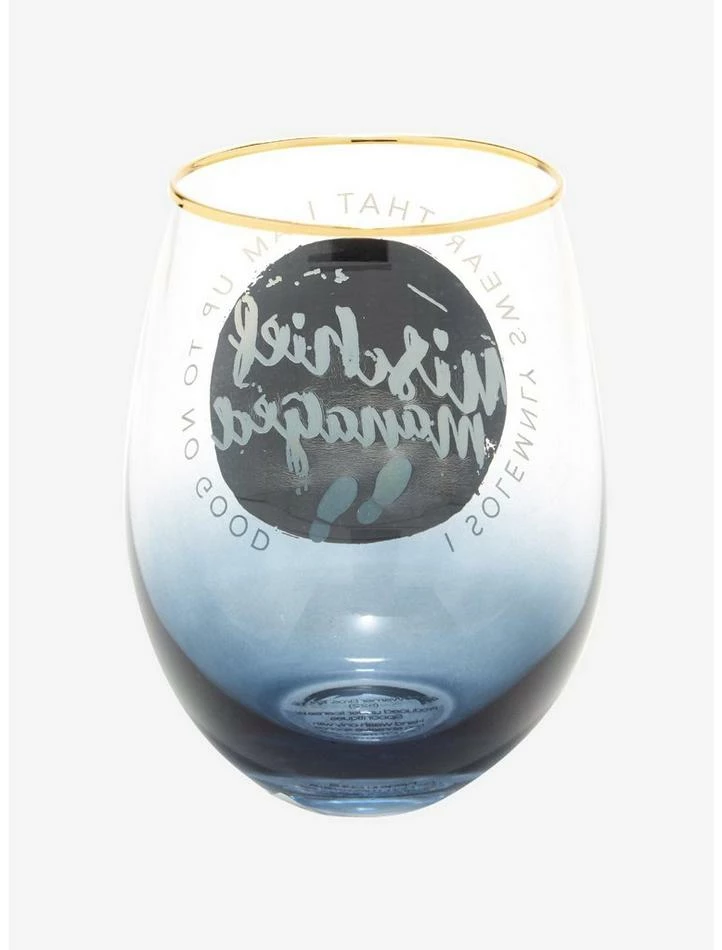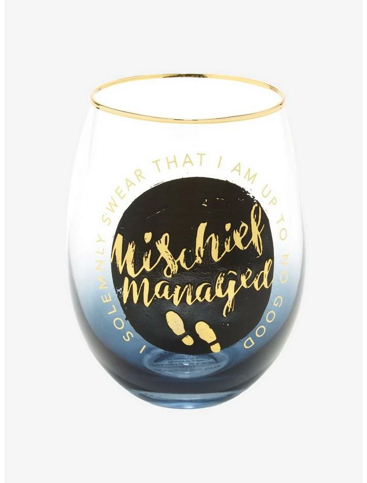 After a day full of mischief, treat yourself to a glass of pumpkin juice! From Harry Potter, this glass cup has an ombrรฉ design and features “Mischief managed” with foot prints, plus the saying to reveal the Marauders Map.