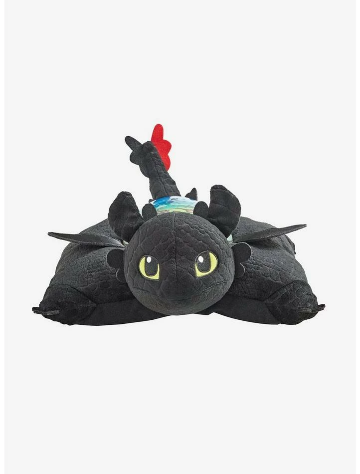 Take flight, fans of Toothless, a night Fury from how to Train your Dragon, will love this Toothless sleep time Lite! This Dragon Plush is extra special because it’s a night light that lights up your ceiling with stars. Official Pillow Pets and licensed NBC Universal item. The softest and highest quality plush, surface wash only. Projects light with 3 color modes and 20 min timer.ย