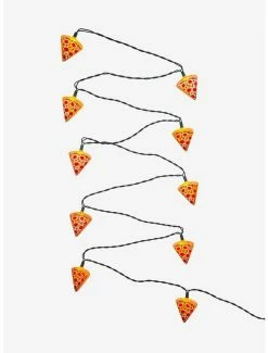 This Kurt Adler 10-Light Pizza Light Set is a fun novelty light set for the decor of various types of parties. Each light in the set is a slice of pizza with tiny pieces of vegetables and pepperoni. This indoororoutdoor set comes with a 30×12″ green wire, a 12V 0.08A clear bulb and 4 replacement bulbs and 1 replacement fuse.