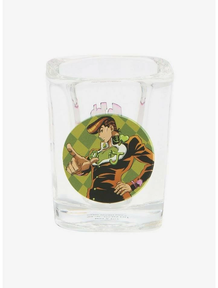 Ready to go find the Arrow? Have a drink before your bizarre adventure begins! This mini glass from JoJo’s Bizarre Adventure: Diamond is Unbreakable features Josuke Higashikata in a special outfit, posing in front of a green diamond background.
