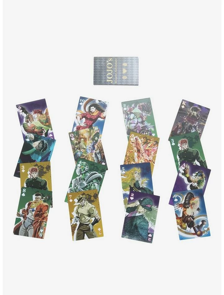 Play your cards right and join the adventure! From JoJo’s Bizarre Adventure, this deck of cards features brightly rendered images of characters and moments from the anime.