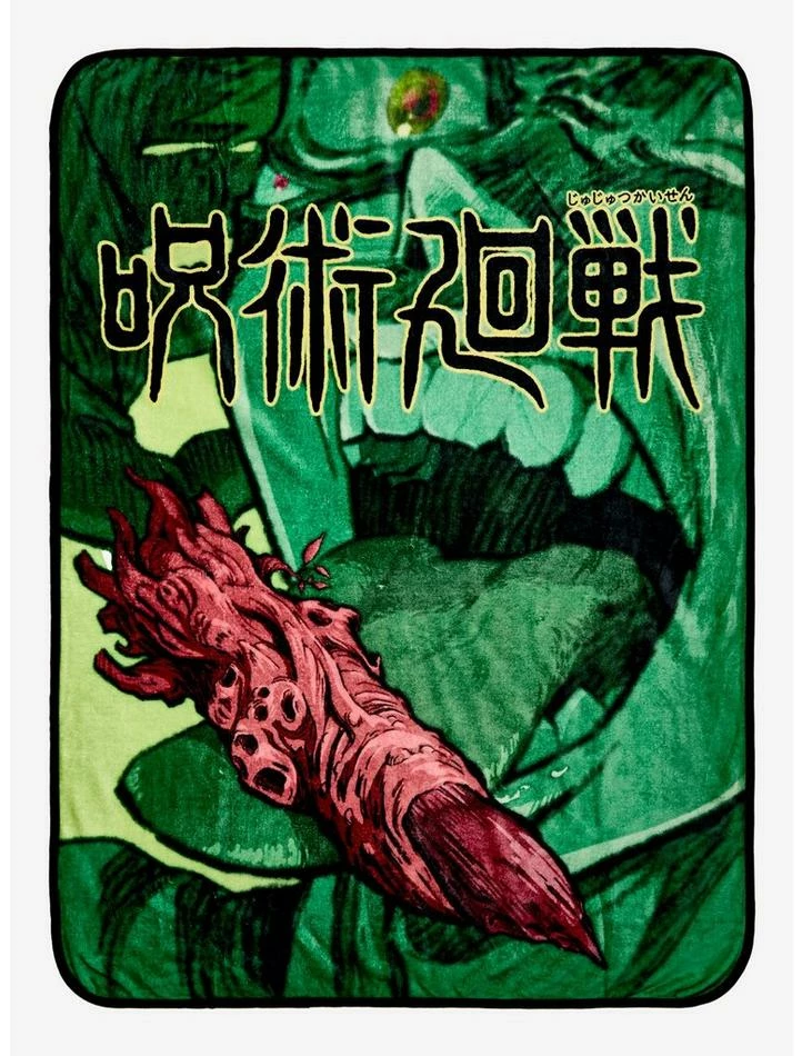 Binging Jujutsu Kaisen means grabbing a cozy blanket and some snacks to munch on! Sukuna’s fingers, perhaps? This super soft throw blanket features a green tonal image of Yuji swallowing Sukuna’s finger, plus the anime’s title across.