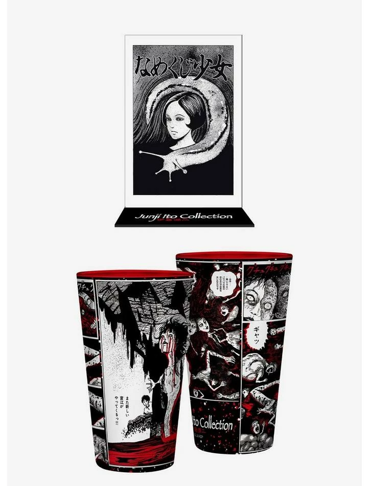Officially licensed Junji Ito products.Bundle includes (1) Tomie Glass and (1) Slug Girl Acryl Figure.Figure is made of high quality acrylic resin.Glass holds 14 oz. and is dishwasher safe.Figure includes (1) acrylic base and (1) Slug Girl Acryl figure.