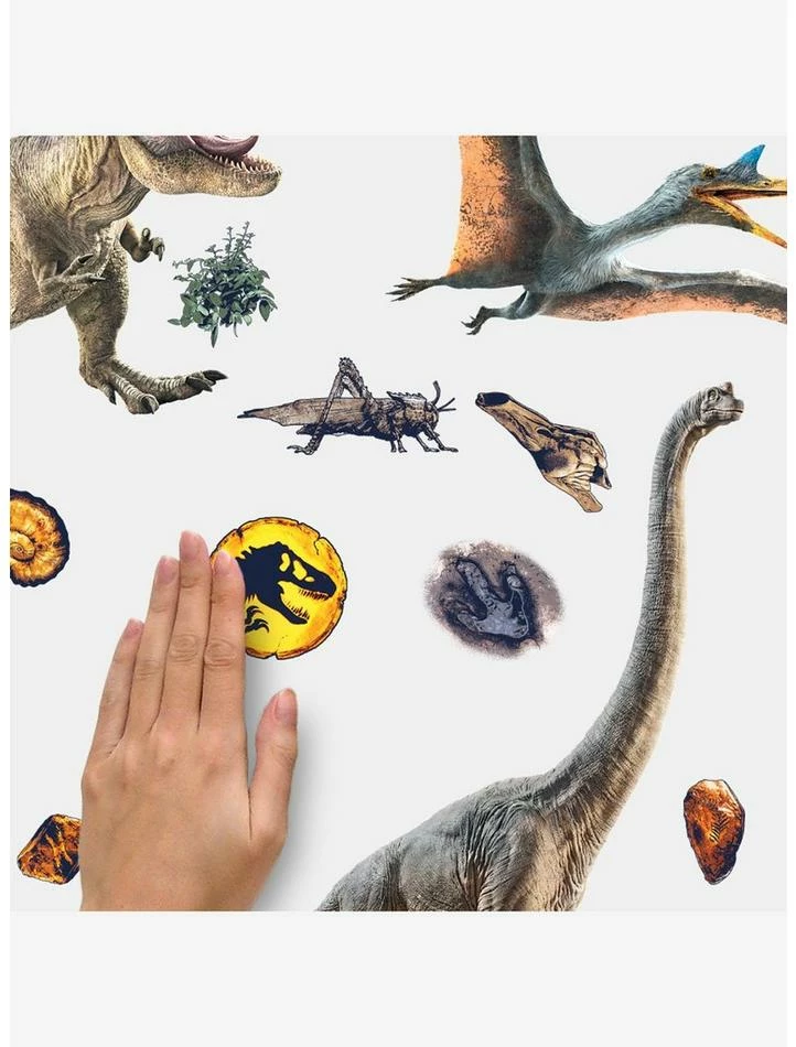 Bring the latest and greatest characters of Jurassic World: Dominion to the walls of your game room or bedroom with the RoomMates Decor Jurassic World: Dominion Peel and Stick Wall Decals! Personalize as you would like and make it your own with the ease of our peel and stick adhesive. Includes 31 decals – 2.50 inches x 1.87 inches to 16.39 inches x 7.48 inches.