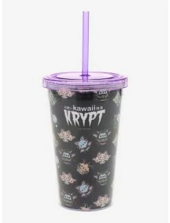 Summoning occult creatures takes a lot of energy. Make sure you stay hydrated with this creepy cute travel cup! Featuring a toss print of kawaii versions of your favorite cryptids. Comes with a purple screw-on lid and a reusable straw.