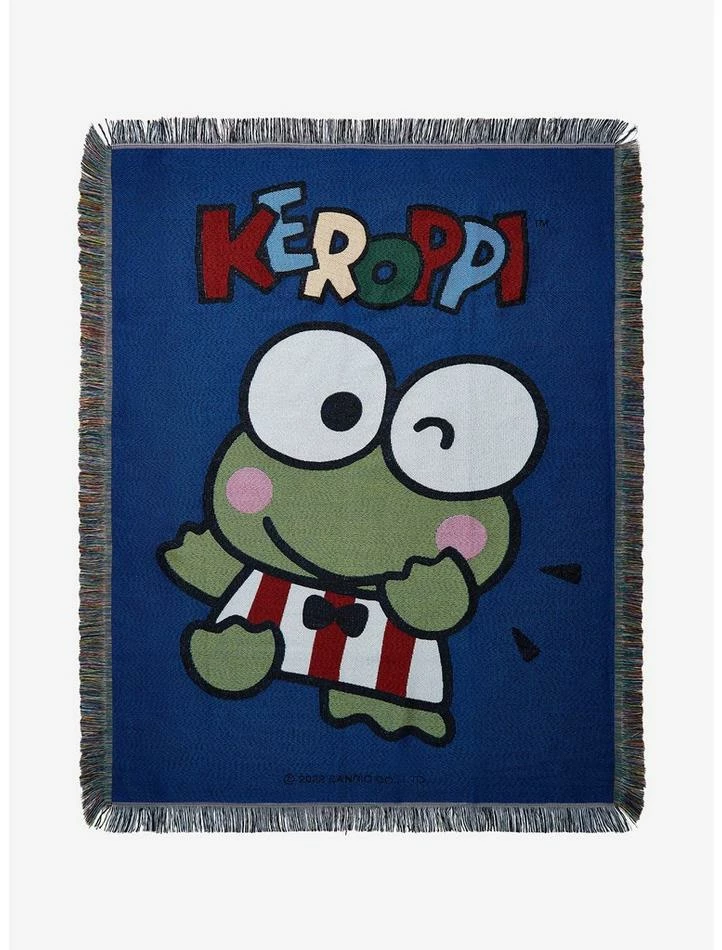 Get cozy with Keroppi! This tapestry throw blanket features an image of Keroppi waving with his name above.